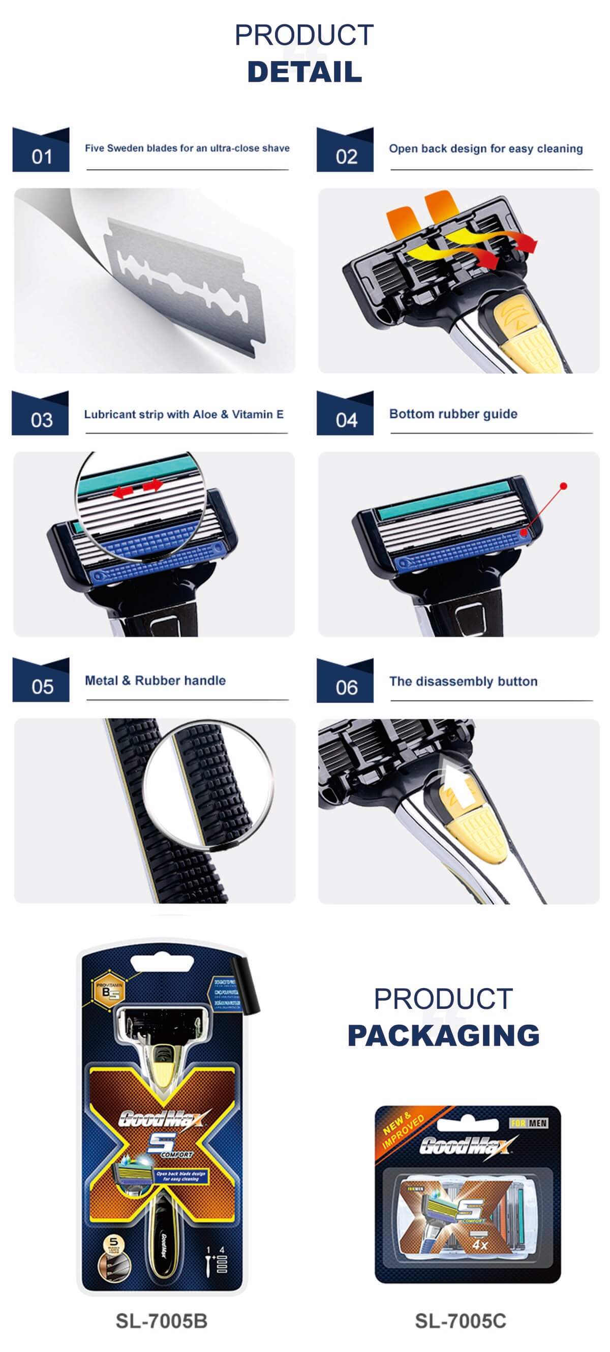 జింక్ అల్లాయ్ హ్యాండిల్ 5 బ్లేడ్ మెన్ షేవింగ్ బార్బర్ ఫేస్ డిస్పోజబుల్ రేజర్ మోడల్ 7005